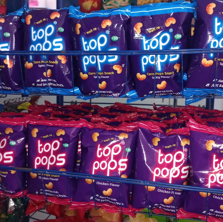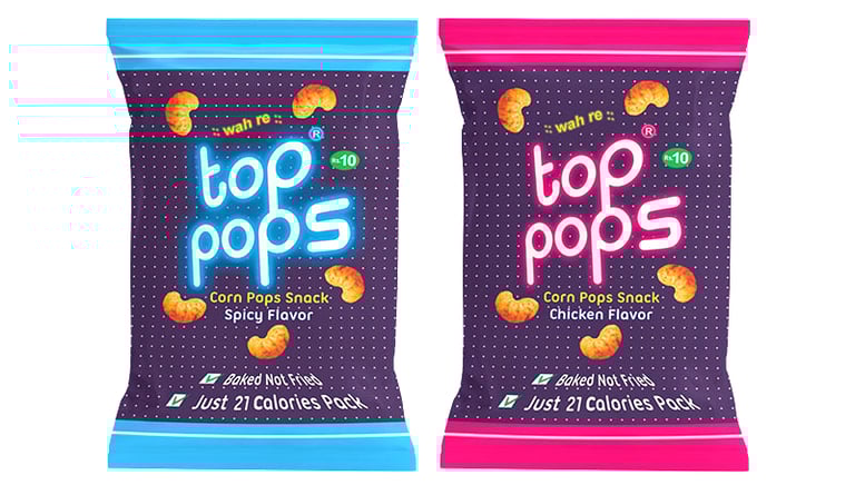 TopPops: A beloved childhood snack, pioneering corn pops in Pakistan since 1989. Enjoy our delicious, low-calorie treat that has captured hearts for generations.